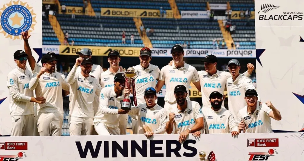 In a thrilling encounter, New Zealand triumphed over India by 25 runs in the final Test of the series at the Wankhede Stadium, marking an unprecedented whitewash of the Indian team at home in a series of three matches or more. The visitors showcased their resilience and tactical astuteness, overcoming a challenging start and successfully defending a target of 146 runs, largely thanks to the impressive bowling performances of Ajaz Patel and Glenn Phillips.